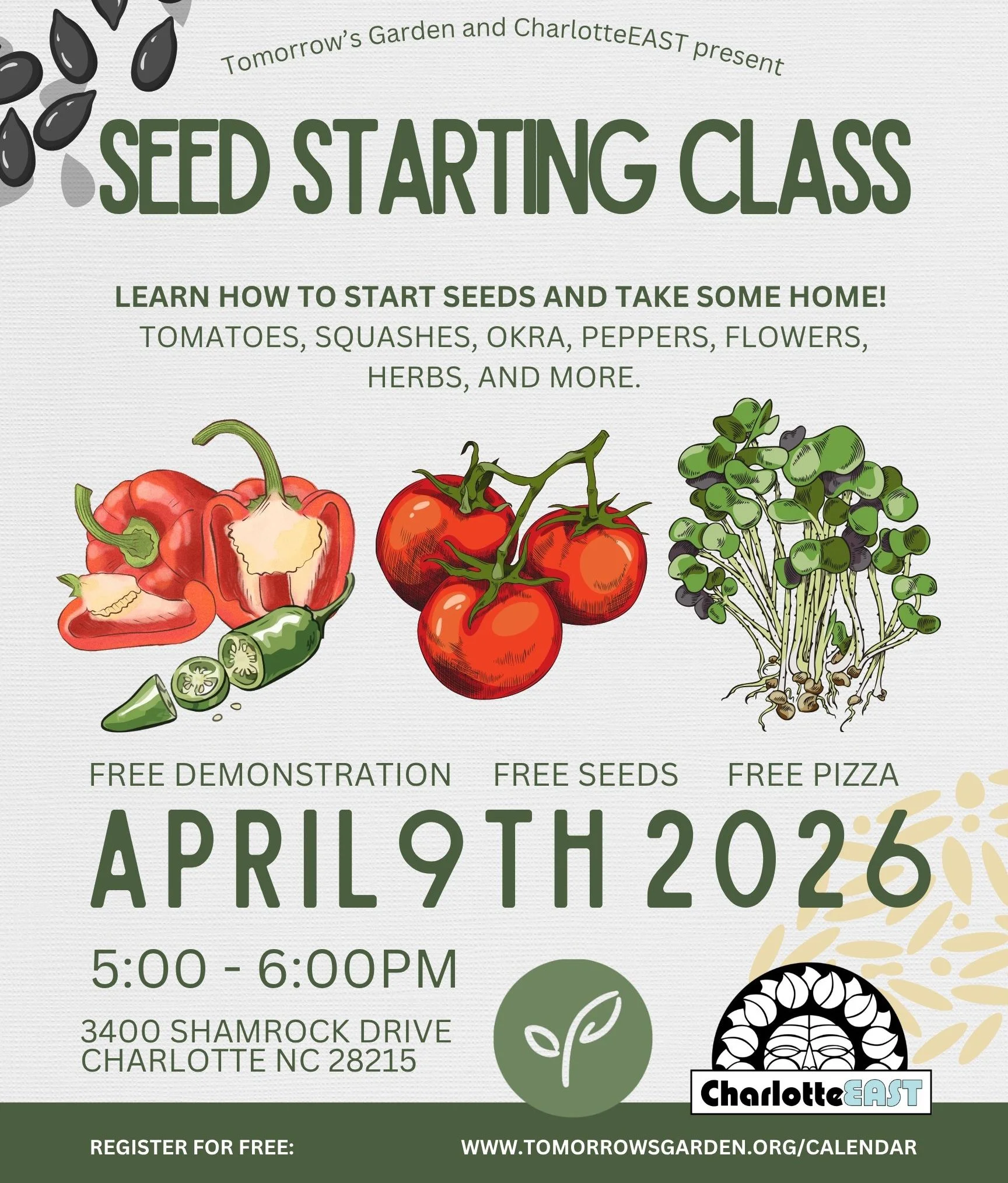 Charlotte, NC 28215Seed Starting. Tomatoes, squashes, okra, peppers, flowers, herbs, and more.